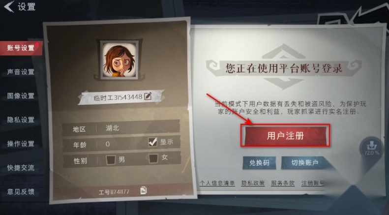 2.然后点击用户注册。