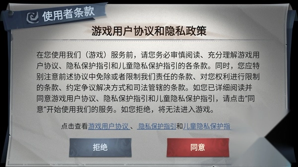 1、首次打开游戏,阅读并同意隐私协议。