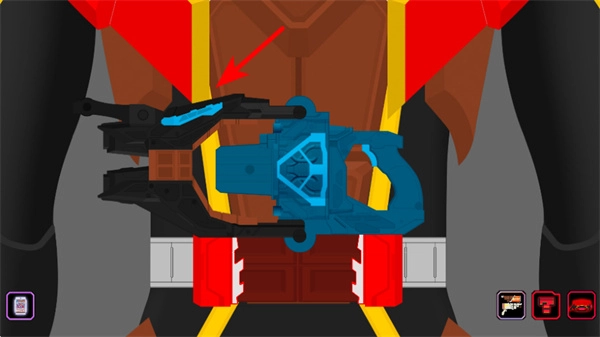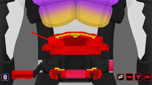 查看界面右侧的道具栏图标,就能打开装备选择界面,留意红色模拟零件的位置,这样便于装配操作。
