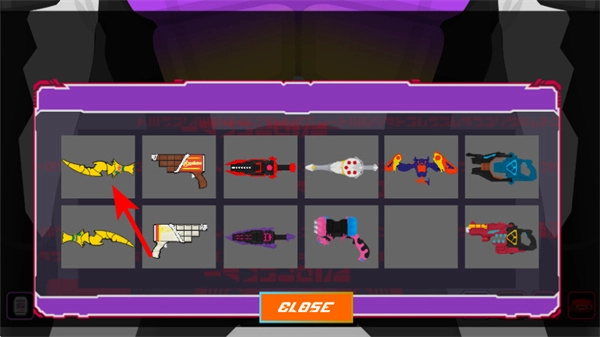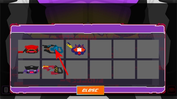 按照红色箭头的指引,在装备列表里找到并点击像蓝色武器这样的指定装备,就能完成该装备的选择操作。