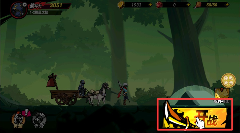 2、打完第一波敌人后记得点升级,可以加攻击力或者血量,建议先堆攻击,这样后面打怪能更快解决战斗节省时间。