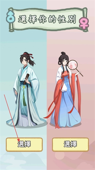 进入锦绣人生游戏并点击开始游戏后,需选择角色性别,可通过点击下方按钮进行选择。