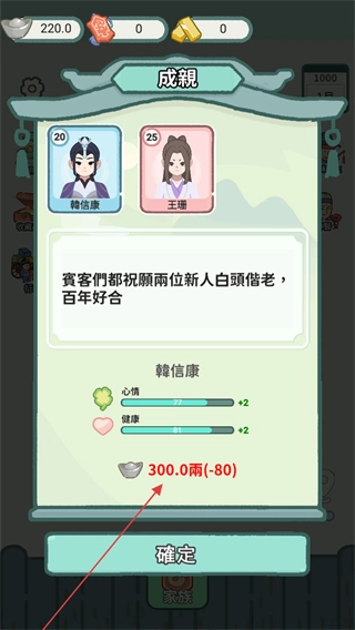 随着剧情推进,遇到合适的姑娘并与之结为连理后,将解锁设宴的选项。选择设宴需消耗一定白银,不过这会使其他属性数值得到提升。