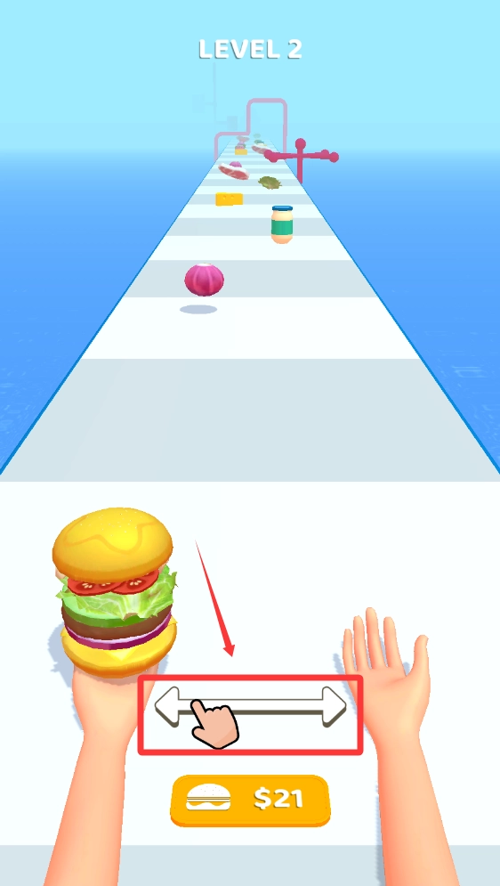 极简的操作设计,只需左右滑动就能完成所有操作,搭配明快的美食主题画风,让游戏体验轻松又惬意,尤其适合短时间的休闲娱乐。