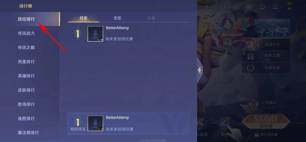 游戏大厅的左侧设有好友列表与排行榜,点击排行榜选项,即可进入排行榜界面。