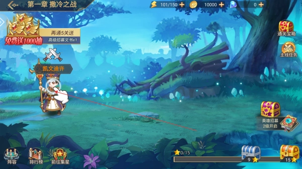 进入游戏第一章“撒冷之战”的界面后,注意查看左上角的福利活动,然后选择你要与之战斗的敌人。