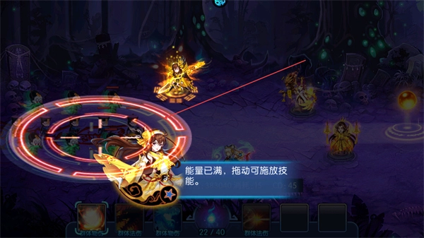 当能量条充满后,拖动角色来释放技能,既能对敌方造成伤害,又能获得防御提升的效果。