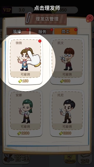 你可以招募契合店内风格的理发师,组建一支专属于你的理发团队。