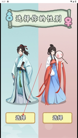 在性别选择界面,点击对应角色形象下方的选择按钮,就能确定角色性别,进而开启后续的游戏流程。