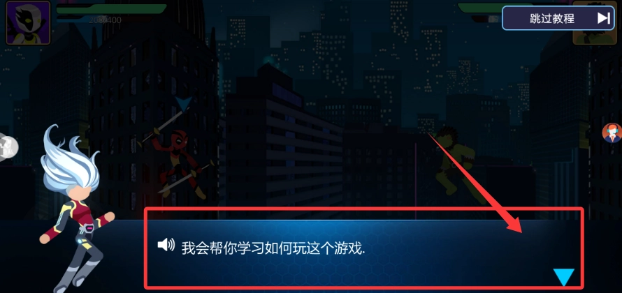 进入游戏后,你可以选择跳过引导教程,直接开启火柴人的格斗冒险之旅。