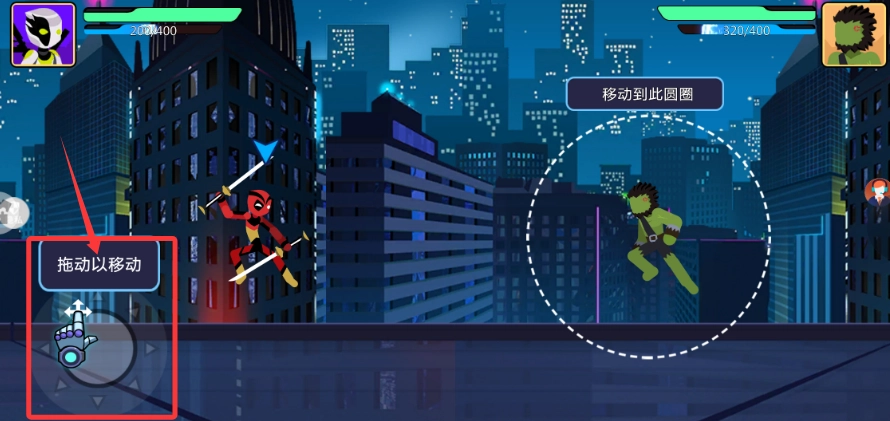 通过左下角的方向摇杆来操控角色移动,借助灵活的走位避开敌人的攻击。