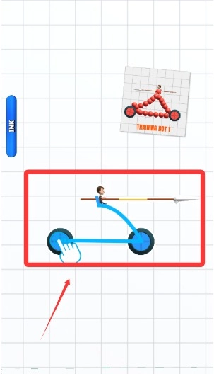 在绘制阶段,玩家进入编辑界面后,通过手指在画布上涂抹墨水,勾勒出车轮、车架、武器等部件,以此完成富有创意的战车设计。