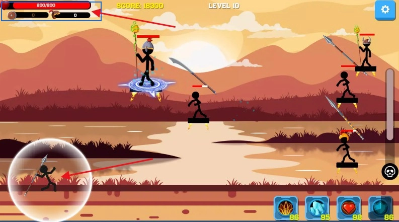 3、利用技能努力打败敌方火柴人吧!