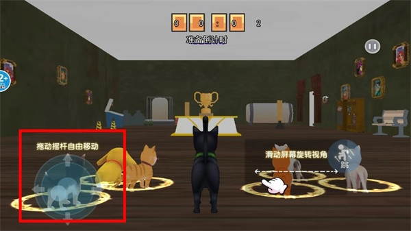 拖动左侧虚拟摇杆,可以控制猫在场景内自由移动。
