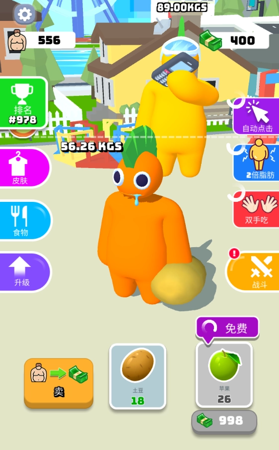3、实时匹配其他玩家开启大胃王对决,在限定时间内比拼谁能积累更多脂肪,争夺比赛的胜利!