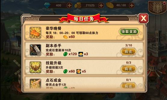 打开每日任务系统,我们就能清晰了解还有哪些每日任务尚未完成,以及完成这些任务后能获得什么奖励等信息。