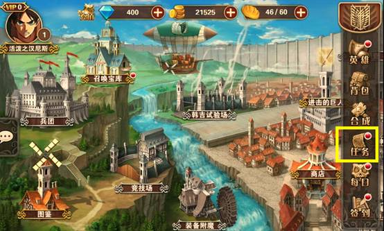 首先是普通任务,见图中的黄色区域点开任务系统,我们就可以清楚的看到我们还有什么任务没完成,完成后有什么奖励等等。