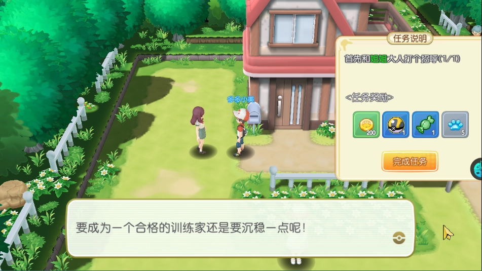 任务说明:首先和姐姐大人打个招呼,这就完成了一个任务,快去领取奖励吧!