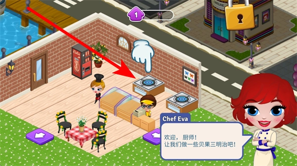 刚进入餐厅时,系统会引导你制作果贝三明治这类基础美食,跟着指引操作厨具,就能做好第一份菜品,从而熟悉基本的烹饪流程。