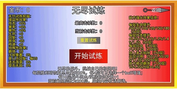 3、这里选择的是无尽试炼,我们可以选择一个祝福开始闯关。