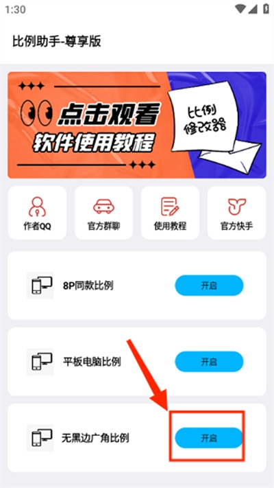 2、点击任意一款比例后的开启