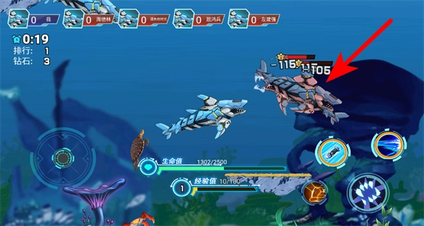 进入对战场景后,点击右侧的攻击按钮,向其他机器鲨鱼发起挑战,开启本场的对战环节。