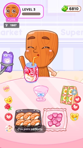游戏借助让人身心舒畅的ASMR Mukbang音效、风格鲜明的Brainrot角色以及妙趣横生的直播互动环节,打造出松弛感与刺激感并存的体验。通过不间断开启直播、为角色提升等级、尽情享用美食,努力成长为备受喜爱的Mukbang明星吧!
