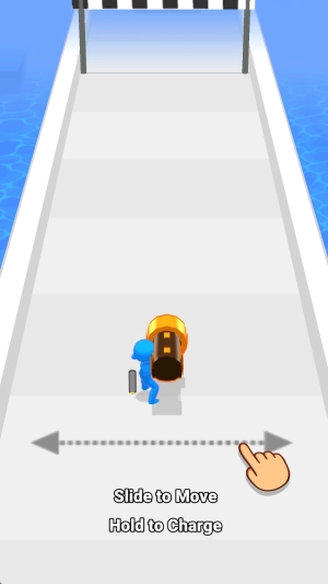 当角色移动到赛道尽头的炮筒装置处时,长按屏幕进行蓄力,瞄准前方目标后松开手指发射角色,要注意避开障碍物。