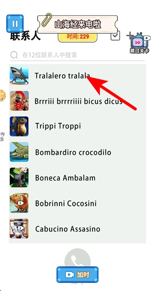 在联系人列表里,点击目标联系人(例如Tralalero tralala),选中该联系人以便准备接听来电。