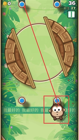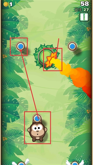弹射时把【猴子】挂在蓝色节点上,利用场景里的机关结构来调整弹射方向,能够增强弹射的连贯性。