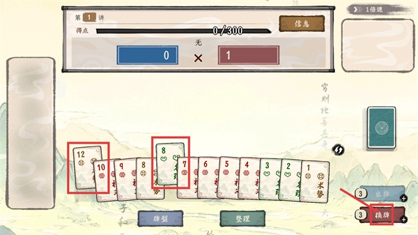 在牌局里借助【换牌】功能来调整手牌,把【12】【8】这类牌整合起来,为凑成有效的牌型提前做准备,从而提高出牌的效率。