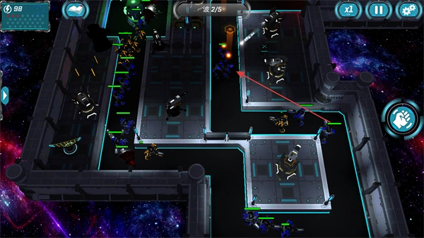 操控防御塔攻击行进路线上的敌人,清除当前波次的敌方单位,积累资源。