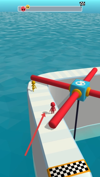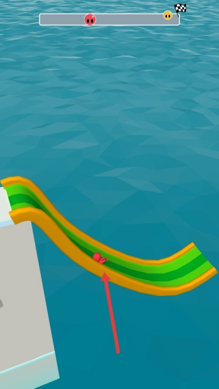 请继续按照箭头的指示,引导红色小人在彩色滑道上移动,从而完成该关卡的任务。