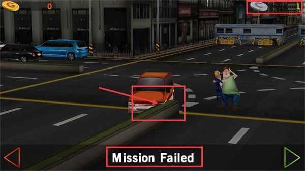 若因碰撞导致【Mission-Failed】,可收集场景内的硬币来积累资源,重新挑战时要留意避开道路上的障碍。
