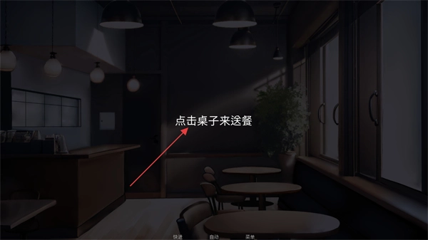 在当前咖啡店界面,按照点击桌子送餐的提示,点击相应的桌子完成送餐步骤,以此推进游戏进程。