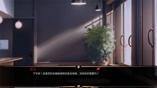 当处于咖啡店场景时,先找到红色箭头所指向的吧台餐品区域,接着完成该区域对应餐品的准备操作,以此来推进流程。
