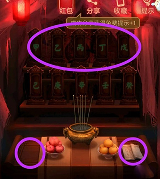 用密码打开门后,把得到的道具安装在水井上。接着查看灯笼里的线索,发现粉色方框的缸内有虫子。