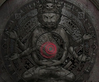 根据提示将收集到的道具放在佛像的手里,左手:上无面铜人、下红蜡烛;右手:上芭蕉叶、下死蝼蛄,中间照片。完成后第二章结束。