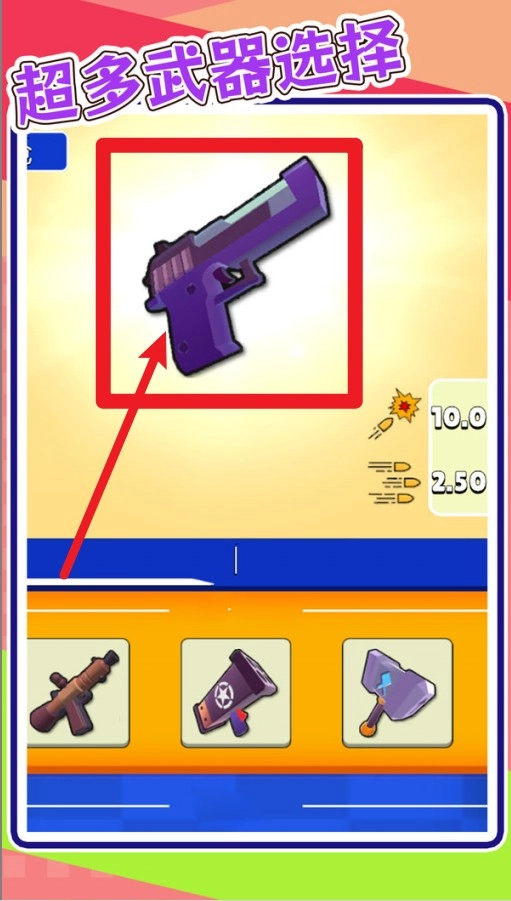 玩家能够挑选各式各样的武器来参与战斗,像那把紫色的手枪就包含在内,它能带来一定的射击威力与速度,比较适合应对移动速度快的僵尸。