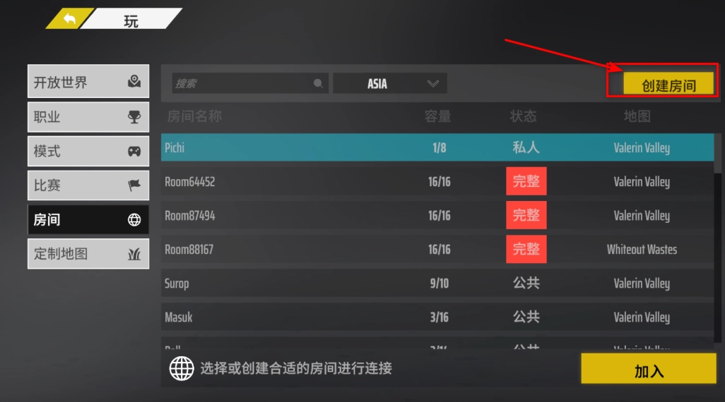 我们选择创建房间