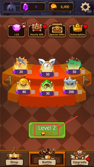 进入【Level2】关卡需要消耗【100】金币,目前你拥有【6,400】金币,可通过当前界面开启该关卡的挑战。