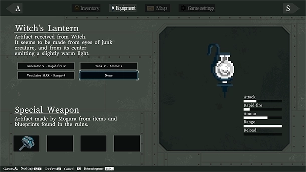 煤油灯可以通过在城镇或遗迹中找到的零件进行强化。自由组合各种属性不同的零件,按照你的喜好强化煤油灯吧。