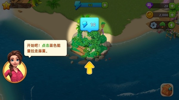 点击蓝色能量拉走藤蔓。