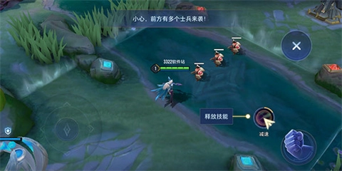 点击右下角的普通攻击按钮,消灭敌方小兵,从而获取金币与经验奖励。