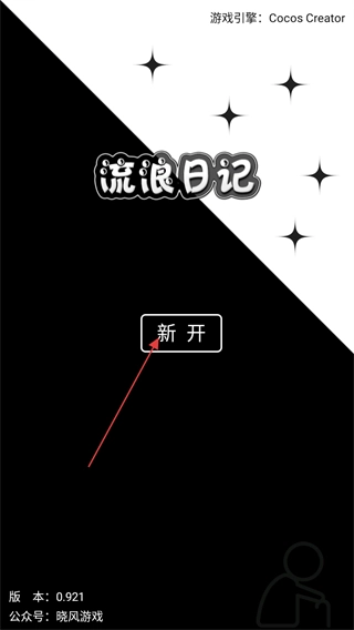 进入流浪日记的启动界面后,点击“新开”按钮,就能开启该游戏的全新游玩进程。