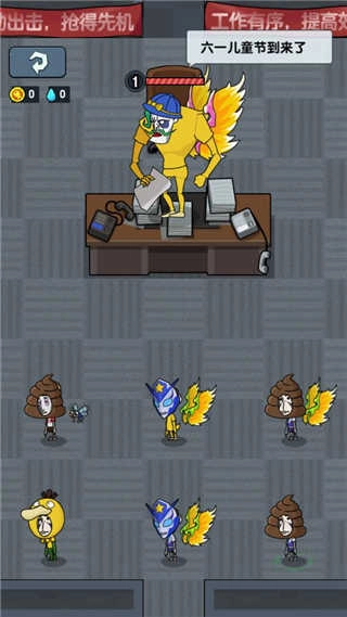 为了能够击败老板,玩家还得在空闲的地方种植可乐、饮水机这类装备。