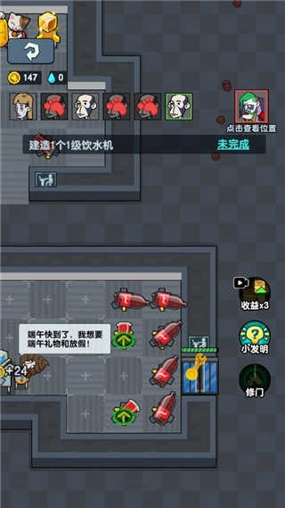 在游戏里给门升级是有技巧的——因为老板攻击时会削减门的血量,当血量快要见底时升级门,能让血量瞬间回满,这样就能持续扛住老板的攻击,接着继续发展自己的武器。