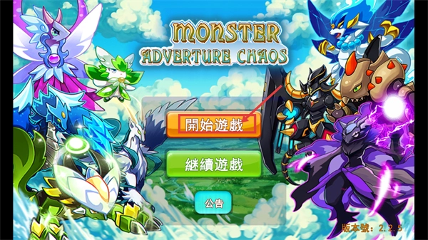 进入【MONSTER-ADVENTURE-CHAOS】游戏时,您可以选择点击【开始游戏】来创建新的存档,也可以选择点击【继续游戏】来加载已有的游戏进度。