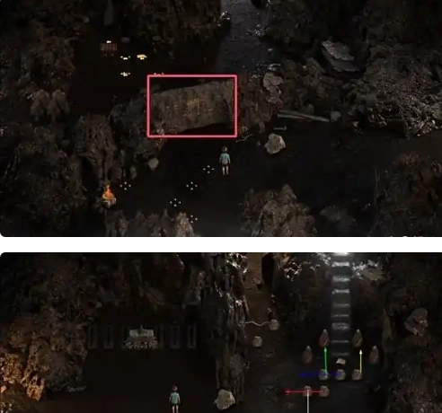 使用鹤嘴镐打破图书馆后面的柱子,跟着戴安娜和黑衣人去后院。进入后的阵法闪光生成石块是因为完成隐藏任务:点燃8个火炬。