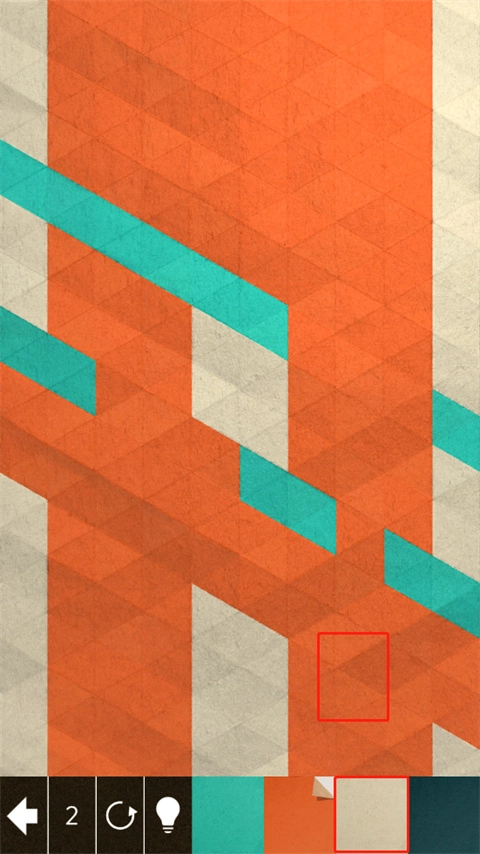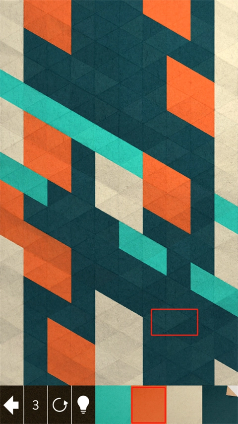 屏幕左下角的数字代表玩家剩余的步数,玩家得在步数倒计时归零前,让折纸最终只剩下一种颜色。